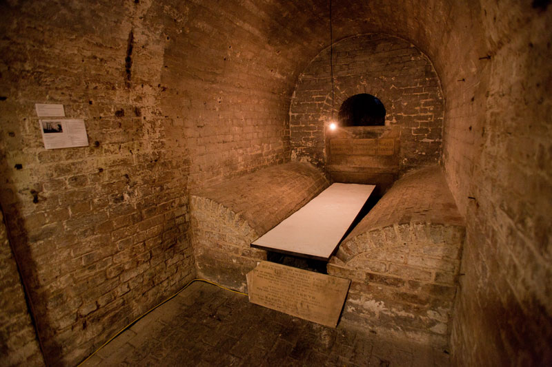 Installation at Crypt Gallery, St Pancras Parish Church, London 2011 Steel, plywood, light, salt, speaker, my heartbeat while I am reading a letter to my grandfather Variable Size